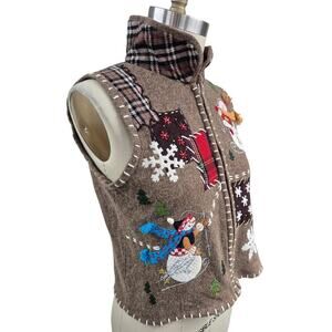 90s Designers Originals Studio Joy Wool Blend Zipper Vest Winter P/M Snowmen