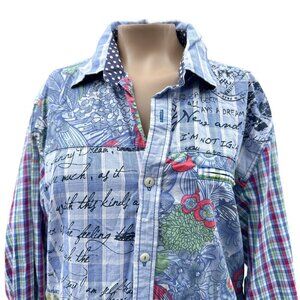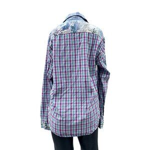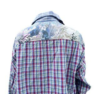 90's Desigual Long Sleeve Plaid Patchwork Floral Button Up Shirt Unisex Mens M
