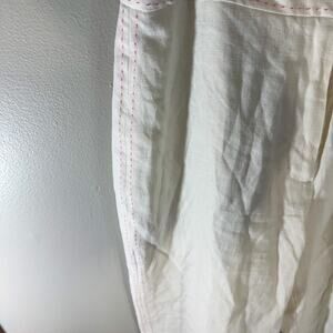 Vintage Eagle's Eye, 100% Linen, Hot Pink Contrast Stitching, Barbiecore, Fuchsia, Magenta, White Trousers, Ivory Linen, Coastal Grandmother, Old Money, Quiet Luxury, Nautical, 90s, Trousers, High Waisted, Wide Leg, Straight Leg, Tailored, Fully Lined, Resort Wear, Vacation, Preppy, Cotton Lining.