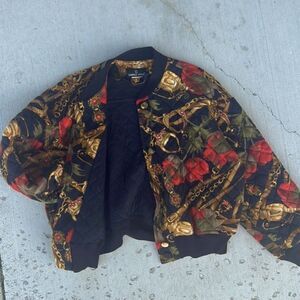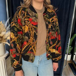 90s Era Vintage Chain Pattern Tapestry Button-Up Quilt Coat - Size Medium