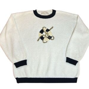 90s Escada Sequin Sailor Life Preserver Terrycloth Sweatshirt, size 34 Medium