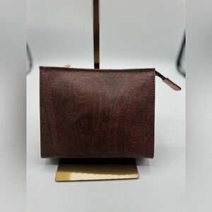 Excellent condition ETRO vintage zippered makeup pouch, no flaws, inside peeling has been cleaned and now has a soft clean interior. Zipper works great no cracks or smell. Excellent pre owned condition. Inside peeling has been cleaned.