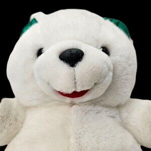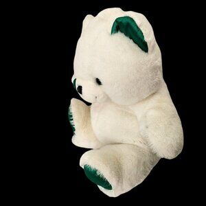 90s Fairview Plush Bear White 12" Christmas Teddy Green Satiny Paws Unisex Toy