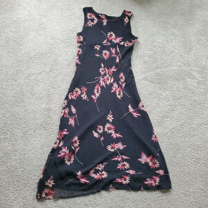 90s Fairy Grunge Whimsigoth Dress 14 Black Floral Grunge Romantic Maxi Silk