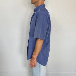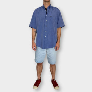 Vintage summer shirt. Blue, breathable cotton. Made in the USA.
