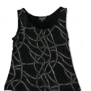 90s Fashion Xscape By Joanna Chen Black and Silver Sparkly Tank Top Size Small
