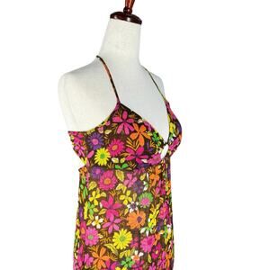 90s Free People Dress Womens Floral Halter Maxi Tie Back Boho Festival Retro