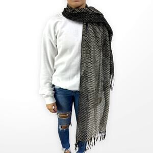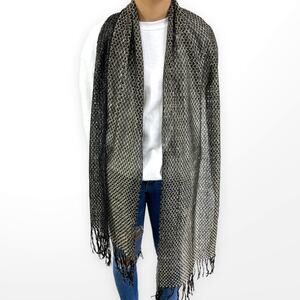 Vintage, loose knit scarf with metallic weaving by Geoffrey Beene