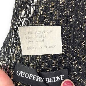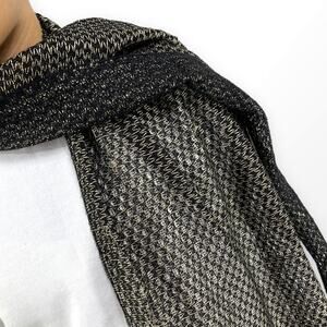 90s GEOFFREY BEENE Vintage Black Gold Metallic Wool Loose Knit Scarf