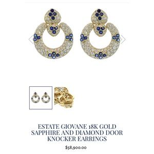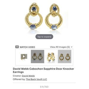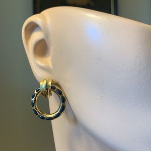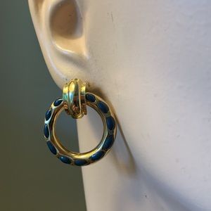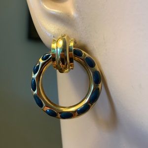 90’s GOLD BLUE CABOCHON DOORKNOCKER EARRINGS