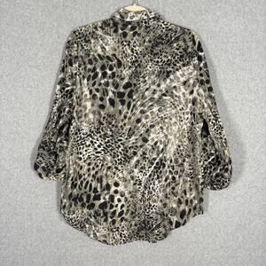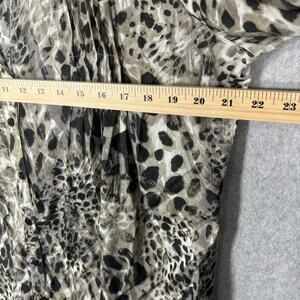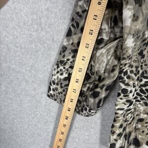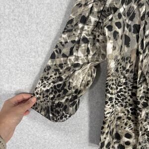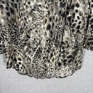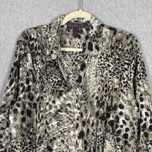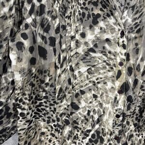 90s Gloria Vanderbilt Blouse Large Animal Leopard Pleated Neutrals Tunic Loud Maximalist Long Sleeve Buttons V Neck Corp Career Work Office Business Church Classic Casual Mob Black Tan White
