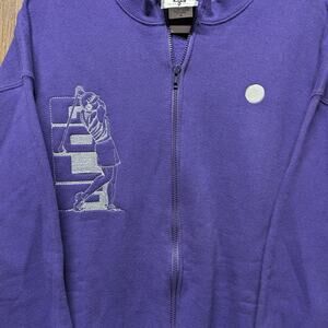 Description: Vintage 90s Golf Embroidered Full Zip Sweatshirt, Purple and white, Women's sports sweater, Block Letter Spellout, perfect for fall months