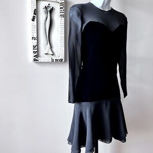 90s Gothic Vintage Bloomingdale’s Black Velvet Sheer Long Sleeve Mini Dress 4