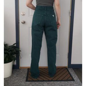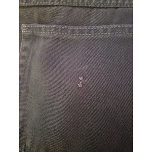 These Jeans are in good condition with some small holes near the right front pocket as if they gotten snagged on something and one hole on a back pocket.