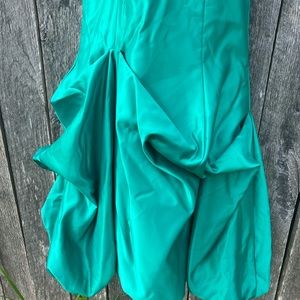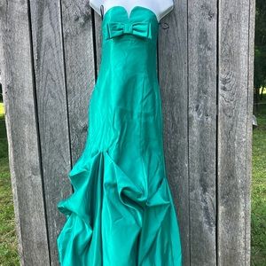 Stunning formal JM green dress in great shape. I don’t see any flaws that would effect the look. Armpit is 14in. Waist is 16in. Hip is 18in. Length is 47in. From a smoke free home. Pictures don’t do it justice. Stunning Kelly green type green.