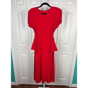 90s Hearts Brand Red Short Sleeve Tie Waist Secretary Midi Dress Size 10