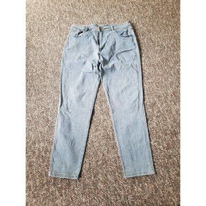 Tagged an 18, I suspect fit more like a 16 as would be typical of vintage. Denim dies stretch.