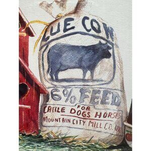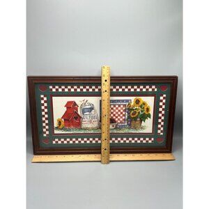 90s Home Interiors Framed Country Art Gamboa Barn Birdhouse Sunflower Feed Sack
