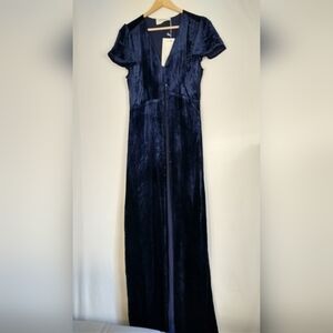Huzhou Blue Velvet Maxi Dress Fairycore Cottagecore Grunge 90s Y2K Medium