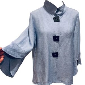 90s IC COLLECTION ASIAN INSPIRED BLUE SWING RIBBED JACKET LG SQUARE BUTTONS L