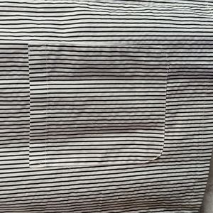Cute and trendy jumper dress. Black and white stripes. Wooden Button ajdustable closures on shoulders. Fits more like XL. No brand.