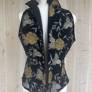 90’s J KARA Beaded Flower High Neck Top Black Elegant Evening Chic Sleeveless L