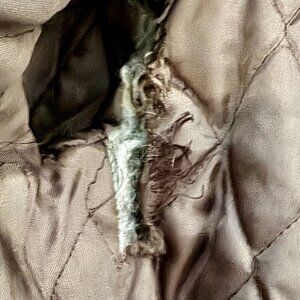 The only issue is inside: small rips in the lining near each armhole (shown clearly in photos). These aren’t visible when worn and don’t affect comfort. They can be stitched or patched if desired, but the coat wears perfectly as-is.