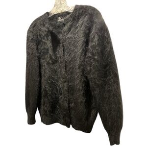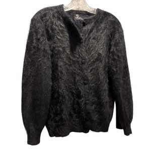 90’s Japanese Vintage 100% Wool Fuzzy Furry Soft Cardigan Black Buttons S/M