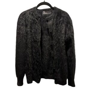 Best Wear by Original Design 90’s Japanese Vintage 100% Wool Fuzzy Furry Cardigan Black Buttons S/M