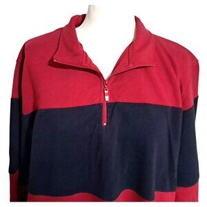 90s Jennifer Moore Womens 1X Red & Navy Striped Long Sleeve Half-Zip Pullover To