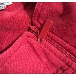 This Jennifer Moore women's pullover offers comfort and style with its bold red and navy stripe design. The half-zip detail adds functionality and modern flair. A little paint missing on the zipper pull.