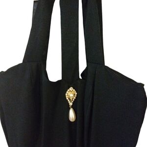 -All Black Hue with Center Costume Gold & Pearl Gem Brooch Accent