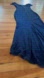 Elegant glittering midnight blue 1990s Jessica McClintock dress with 1930s style.