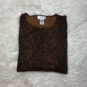 Soft vintage Jones Sport long sleeve top in a rich brown + black leopard print. Stretch cotton blend with a lightweight feel — perfect tucked into jeans, mini skirts, or layered under leather for that effortless Y2K look.