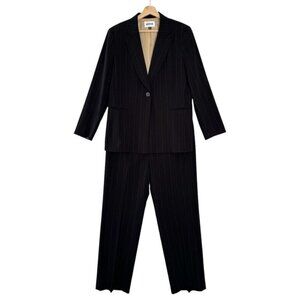 90s Kasper Black w/ Tan Wide Stripe Straight Leg Pants Suit Size 14