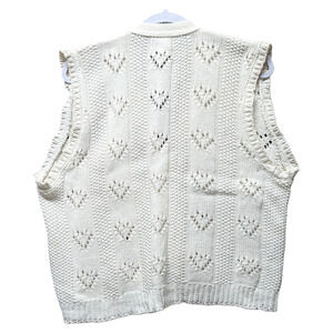 Description: Vintage 90s Knit Sleeveless Cardigan Sweater, all white, cute design, perfect for layering, cottagecore, grannycore, perfect for the holidays, button up front, Vest, crochet
