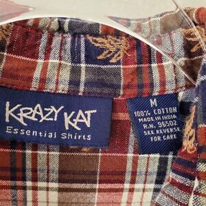 90s Krazy Kat Women Fall Leaf Plaid Button Shirt M Autumncore Nature Cabincore