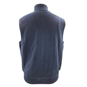Lauren Ralph Lauren Silk Navy Sweater Vest ribbed trim quilted inside up/down gold zipper Sz XL