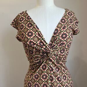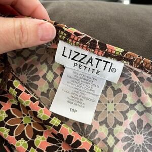 90s Lizzatti Poly Spandex Floral Printed Knot Front V Neck Short Dress Size 10 P
