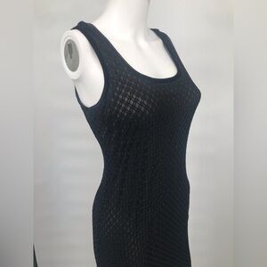 90s Long Double Layer Stretch Netted Maxi Dress. Netting is elastic. All in tact, no breaks. Velvet lining on neckline and arm holes. Slip under netting stops about 6 inches before it.