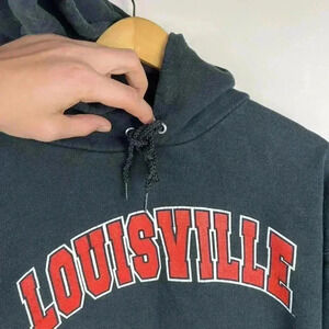 Stay cozy and stylish with this vintage Louisville University hoodie! Made from soft, durable fabric, this sweatshirt features a large 'LOUISVILLE' graphic in eye-catching red on a classy black background. Perfect for showing your school spirit or just lounging around, this hoodie is a must-have for any fan.