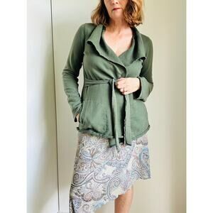 90s Lucky Brand Cardigan Sweatshirt Size Small Army Green Lagenlook Layering