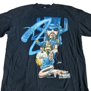 - super cool vintage t-shirt from 90s early 2000s y2k showing some hip hop legends mixed with the Fantastic Four like Big Pun 2pac Jay-z etc