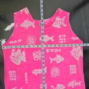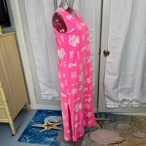 90s Mayan Fish Pink Beach Dress Cruise Loungewear Cotton Vintage Size M