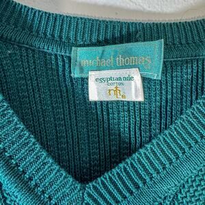 90s Michael Thomas Ltd Teal Egyptian Nile Cotton Knit Sweater Vest Made in USA