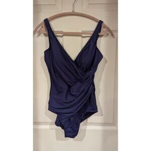 90s Miraclesuit Womens One Piece Swimsuit Size US 10 Purple Blue Beach Classic