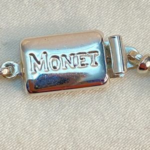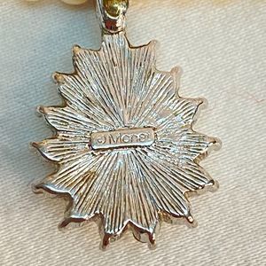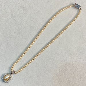 90s Monet Pearlesque Beaded Necklace Teardrop Pearlesque Rhinestone Trim Pendant