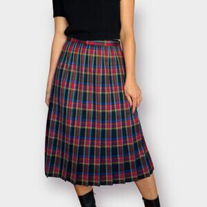 Vintage Pleated Multicolor Plaid Skirt