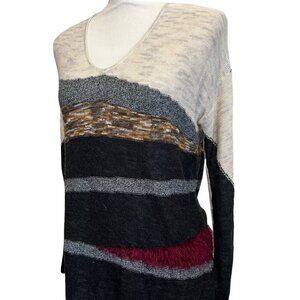 This vintage 90s Mystree sweater is a lightweight, loose knit pullover with a classic V-neck design. Perfect for layering.