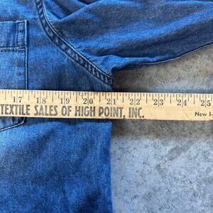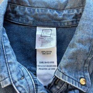 denim, button-up, vintage, 90s, college logo, relaxed fit, faded, casual, streetwear, collegiate